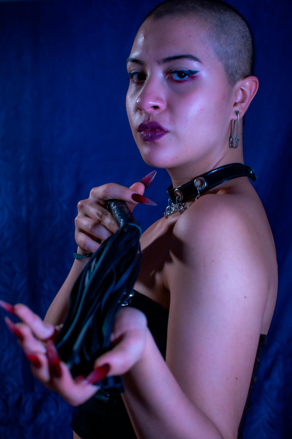 fetish for feet, fire, suffocating, for dirt, for money, for heels, chains, latigos, bondage, harnesses, boots, stockings, cigarettes, cages, sumissive men, tarvestis men, latex, leather, tattoos long nails, by the gotic style.